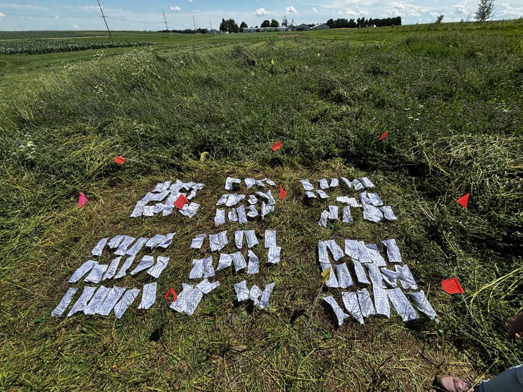 Figure 1. Litterbag setup for the alfalfa decomposition study at the Arlington Agricultural Research Station. Above- and below-ground alfalfa biomass is incubated in-field to quantify nutrient release over time, with manure applied to selected treatments.
